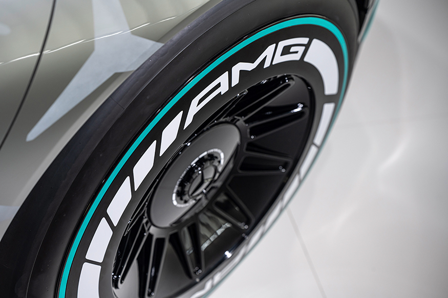 Das Konzept gibt einen Ausblick auf die vollelektrische Zukunft der AMG Driving Performance. Unter der Hülle des viertürigen Coupés steckt die eigenständige AMG.EA Plattform, die derzeit in Affalterbach entwickelt wird. Fließende, vollen Flächen sowie auf ein Minimum reduzierte und in der Wagenfarbe Alubeam-silber lackiert Heck- und Seitenscheiben geben dem Viertürer eine monolithische Erscheinung. Ein langer Radstand, die weit vorn platzierte und stark geneigte A-Säule, sowie ein kurzer vorderer und ein etwas längerer und aerodynamisch geformter Überhang unterstreichen die Dynamik. Weit ausgestellte Kotflügel vorn und die betont breite Schultern hinten verleihen dem Coupé Muskeln.
