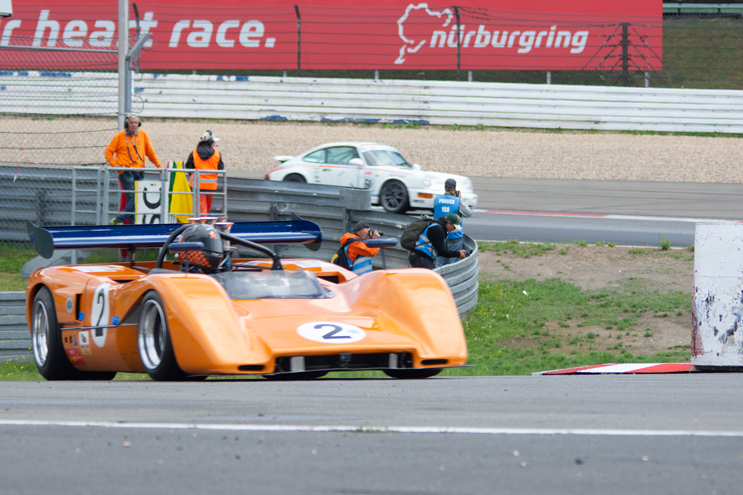 Nach einem fulminanten Auftritt im Jahr 2024 starteten in diesem Jahr leider nur wenige CanAm-Fahrzeuge in der FHR Historic Championship CanAm & Sportscars. Das erste Rennen begann trocken. Lokalmatador Klaus Abbelen kämpfte im ehemaligen Andretti Dauer Porsche 962C mit Silvio Kalbs Lola T296 um die Führung. Bei wechselnden Bedingungen entschied sich Abbelen für Regenreifen, was sich jedoch als falsche Wahl herausstellte. Der Boxenstopp dauerte länger als geplant, so dass Abbelen auf den achten Gesamtrang zurückfiel. Das zweite Rennen gewann Abbelen souverän, allerdings erfuhr er harte Konkurrenz durch den Lola-Piloten Georg Hallau (T212).