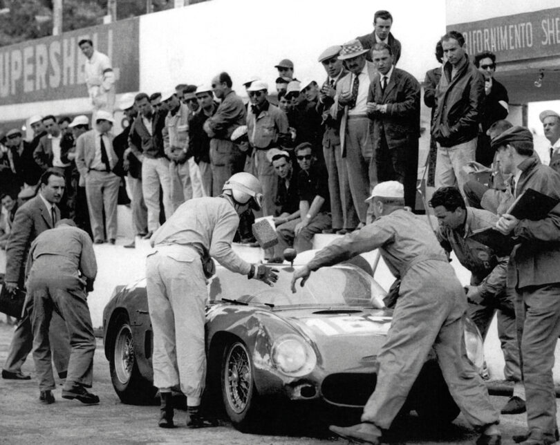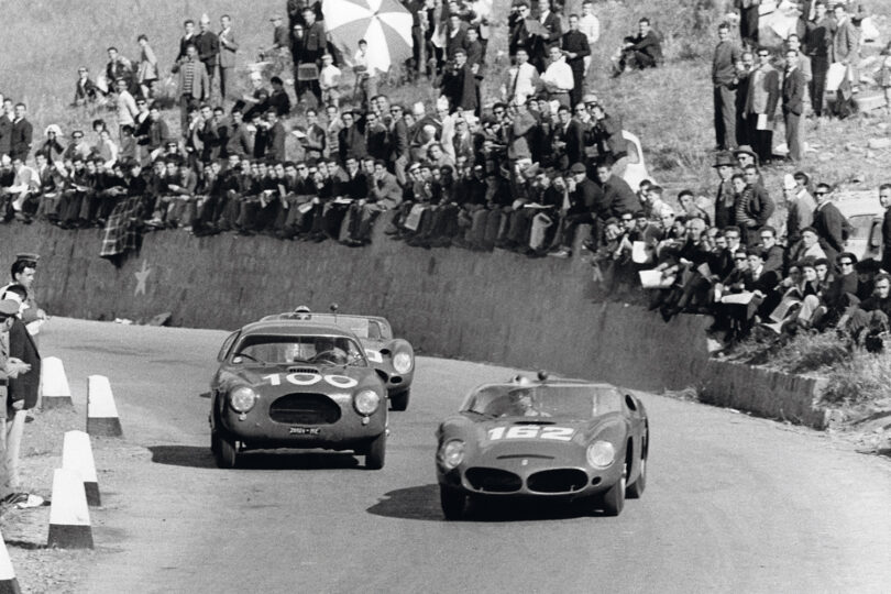 Wolfgang Graf Berghe von Trips und Olivier Gendebien triumphierten 1961 bei der Targa Florio auf dem neuen Ferrari 246SP und setzten damit ein erstes Ausrufezeichen für die Mittelmotor-Ära der Scuderia. Ihr Sieg auf den kurvenreichen Straßen Siziliens bewies nicht nur die Leistungsfähigkeit des innovativen V6-Motors, sondern auch die präzise Abstimmung von Fahrwerk, Gewicht und Aerodynamik, die den 246SP zu einem Wendepunkt in Ferraris Motorsportgeschichte machte.