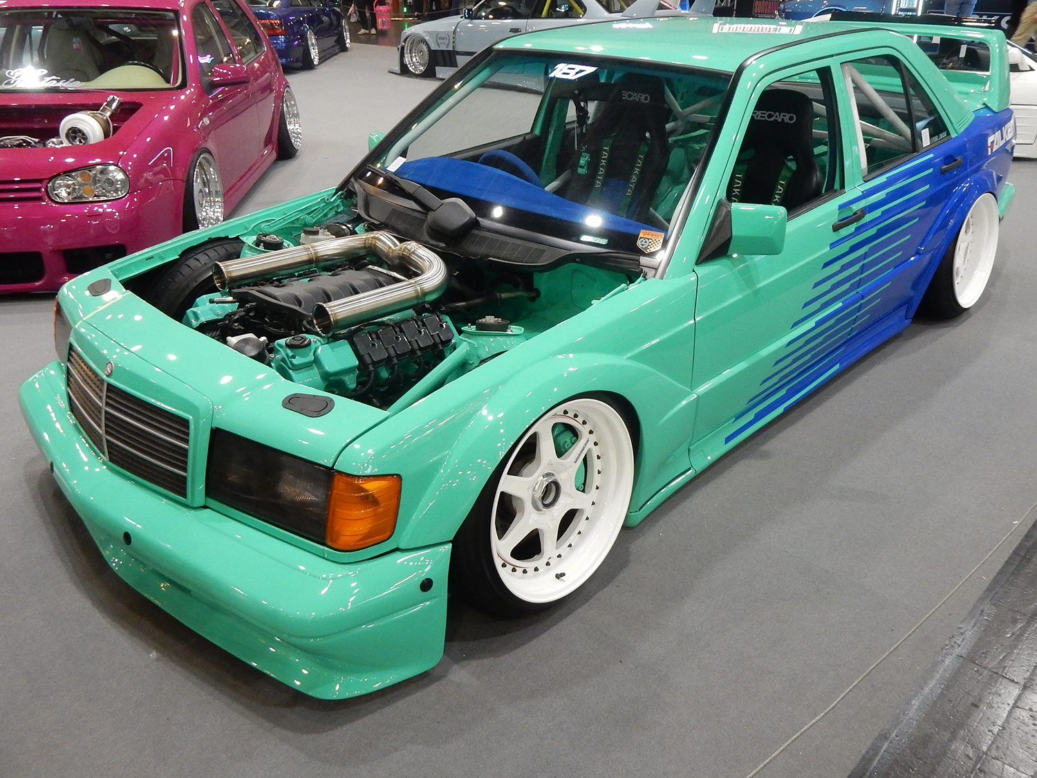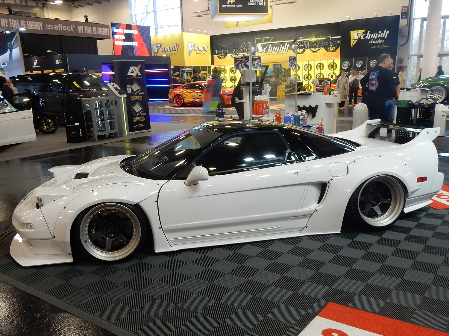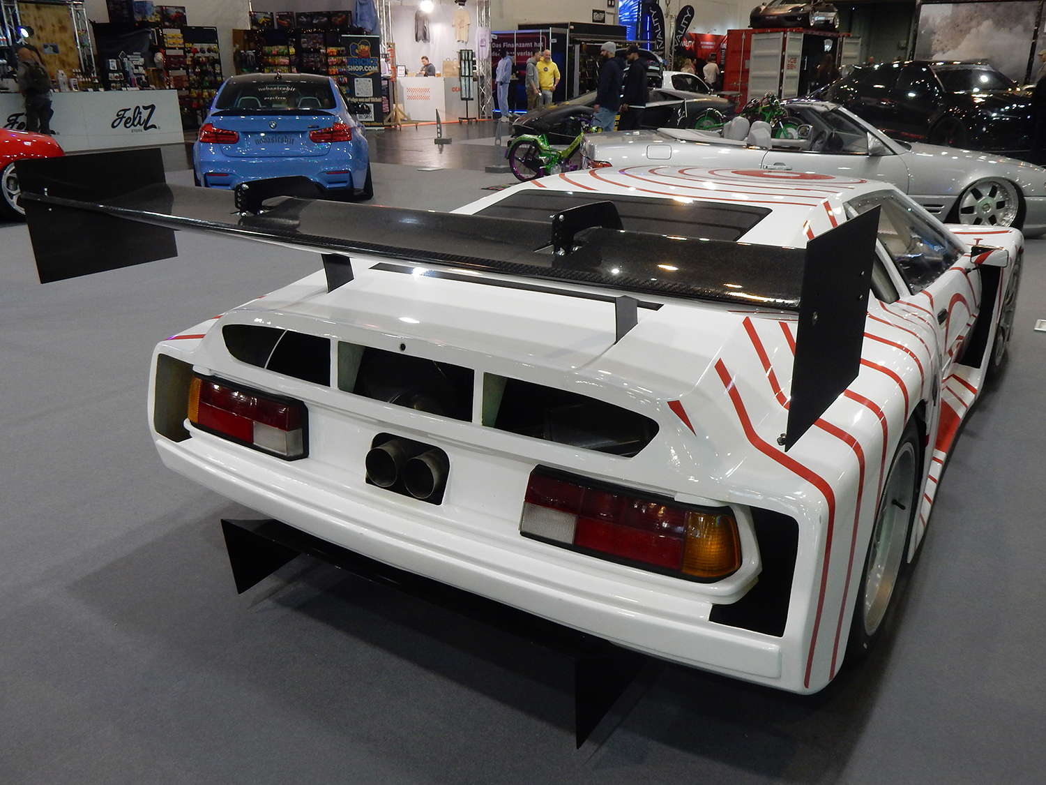 Zusätzlich prägten extravagant gestaltete automobile Einzelstücke das Erscheinungsbild der Messe. Technisch aufwendig modifizierte Showcars kombinierten verbreiterte Karosseriestrukturen, komplexe Mehrschicht-Lackaufbauten und sichtbare Carbon-Aeropakete. Auffällig waren insbesondere handgefertigte Widebody-Kits, versenkte Türgriffe, digital gesteuerte Lichtsignaturen sowie individuell konstruierte Abgasanlagen mit integrierter Klappensteuerung. Viele dieser Unikate verbanden funktionale Aerodynamik mit außergewöhnlicher Formensprache, ohne die strukturelle Integrität der Fahrzeuge zu beeinträchtigen.