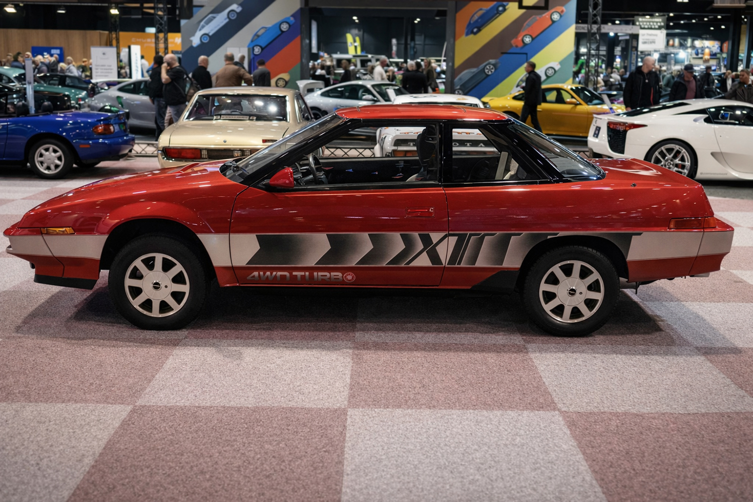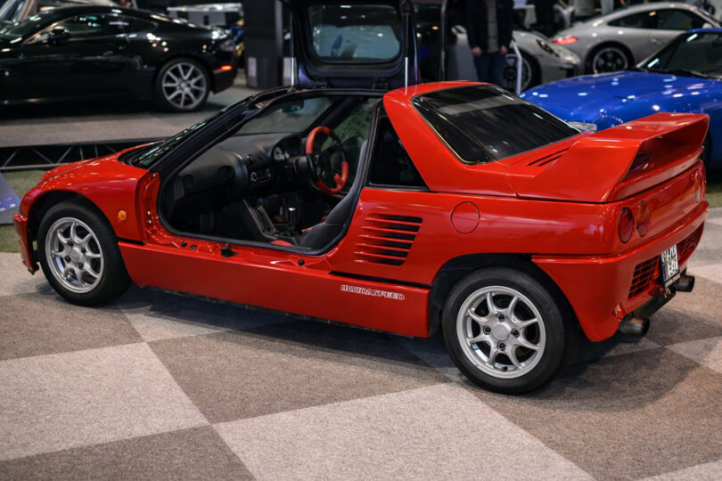 Ergänzt wurde das japanische Technikbild durch Fahrzeuge wie den Mazda RX-7 TWR, der den Wankelmotor im internationalen Tourenwagensport etablierte, sowie den Autozam AZ-1, der mit Mittelmotor-Konzept und Aluminiumstruktur bewies, dass selbst das Kei-Car-Segment Raum für ambitionierte Ingenieurslösungen bot. Daneben zeigten europäische Exoten wie Fiat 8V Berlinetta Speciale, Saab Sonett III oder Aston Martin Lagonda Series 2, wie unterschiedlich technische Antworten auf ähnliche Fragestellungen ausfallen konnten.