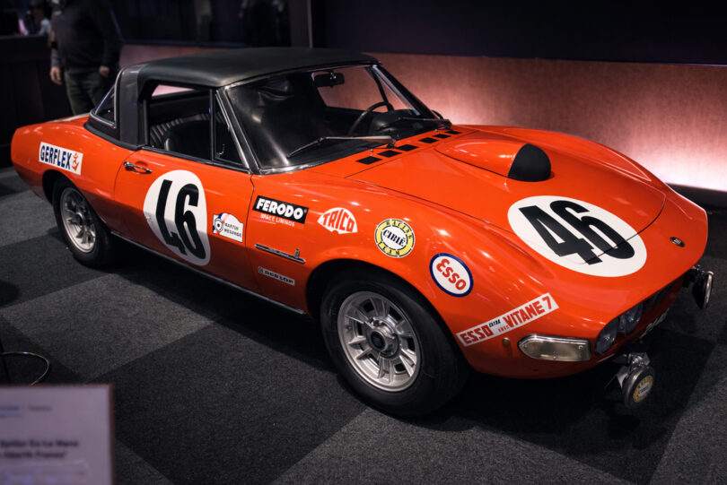 Motorsportliche Ingenieurskunst zeigte etwa der Toyota 94C-V, ein kompromissloser Gruppe-C-Prototyp mit Kohlefaser-Monocoque, Turbomotor und konsequentem Leichtbau, entwickelt für maximale Performance auf Langstrecken genau wie der Mazda 787B mit Vierscheiben-Wankelmotor, der 1991 das 24-Stunden-Rennen von Le Mans mit den Fahrern Volker Weidler, Johnny Herbert und Bertrand Gachot gewann.